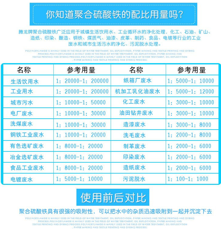 聚合硫酸鐵是經(jīng)過改進(jìn)的一種高分子鐵鹽聚合物,在污水作為除磷劑除磷處理中,比普通PFS及其它同類藥劑的投加量更少,形成污泥量更少。與普通聚鐵相比,其含量達(dá)到11%~13%,特別在廢水除磷上進(jìn)行了特別改進(jìn),其投加量可降低達(dá)50%。