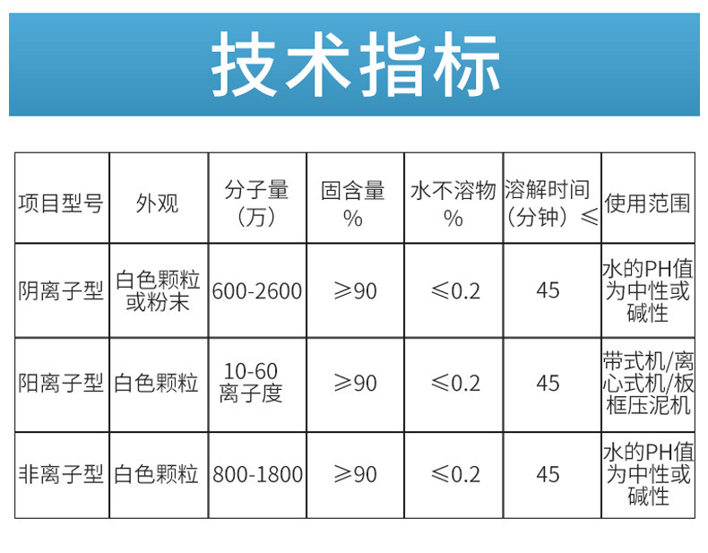 聚丙烯酰胺的技術(shù)指標(biāo):